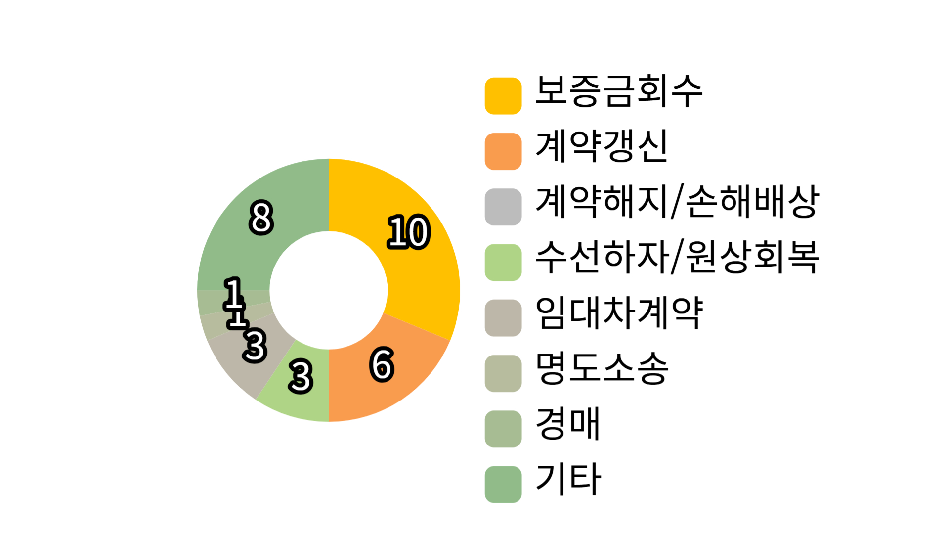 9월 상담은 총 32건 이루어졌습니다. 9월에도 전세사기 관련 상담이 여러 건 있었습니다. 전세사기의 문제가 계속 발생하고 있습니다. 전세사기 예방 및 피해자 지원을 위한 관련 법이나 제도가 더욱 더 강화되어야 합니다. 앞으로 세입자114는 세입자들을 위한 법률 상담이외에도 관련한 제도와 법을 개선하기 위해 다양한 노력을 펼치도록 하겠습니다!